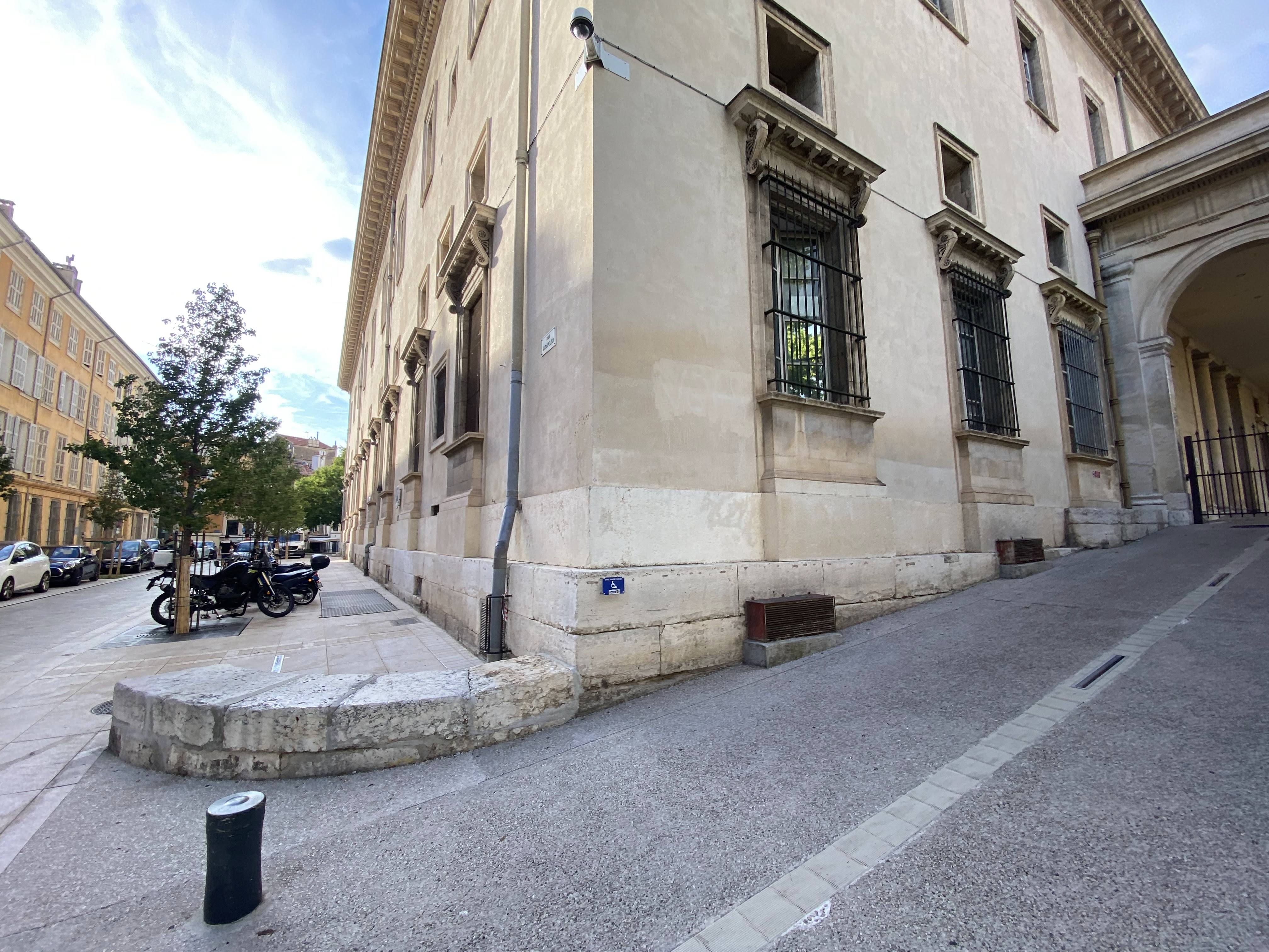 Un beau bâtiment. Lectribunal decgrande instance a été complètement rebâti. A côté fu Lycee Vauvenargues